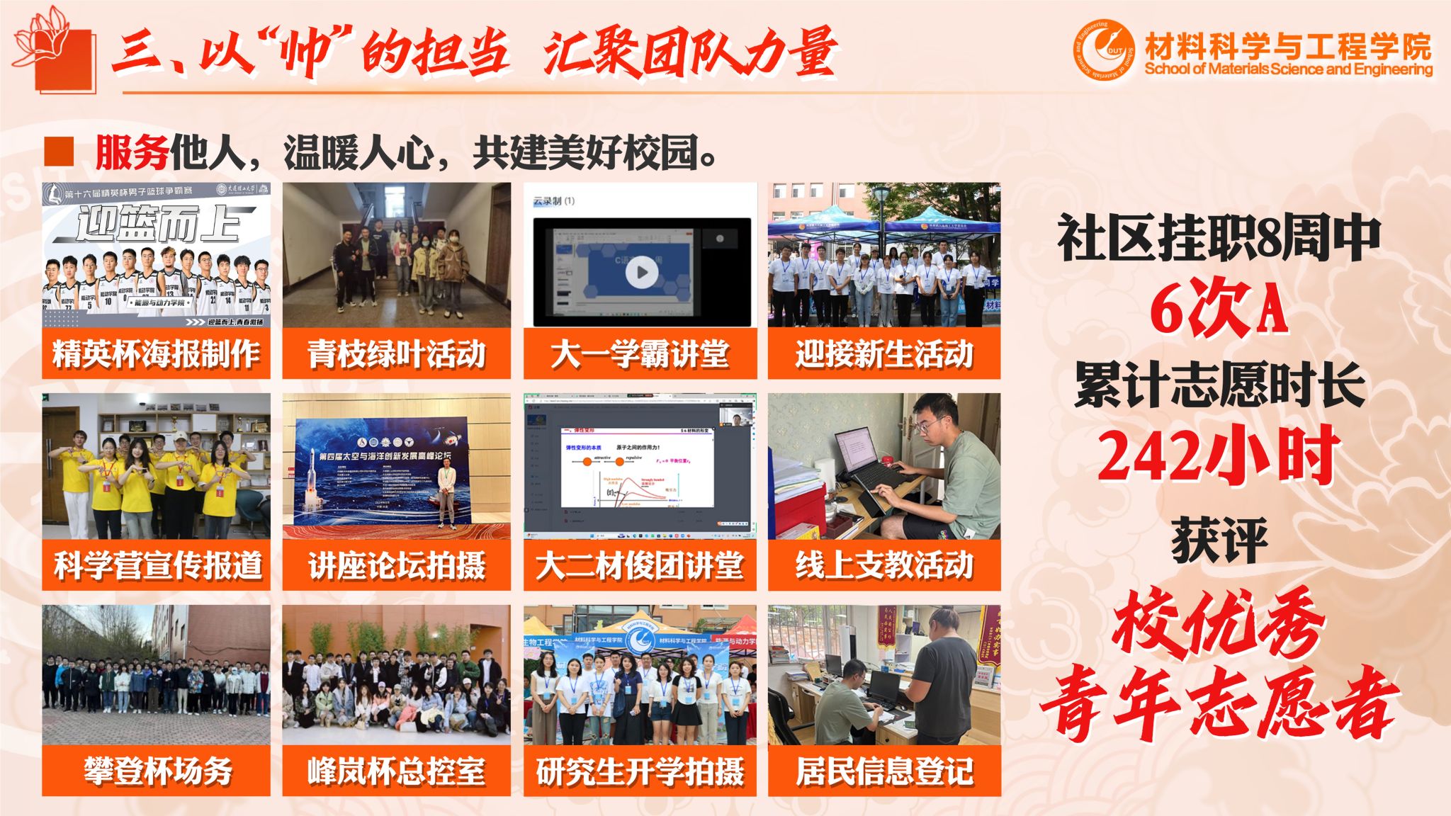此外,他也担任党支部副书记、楼宇自管会副会长。身份在变,但“带领一群人、成就一番事”的将帅之心从未改变。